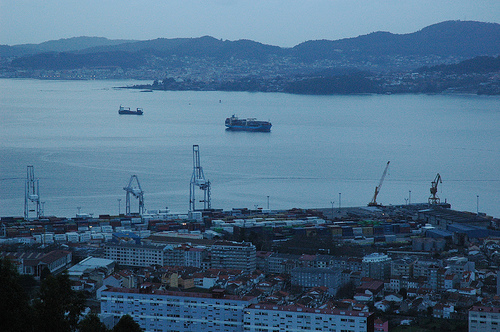 Durante un intre sentín o tobogán do tempo amoreándose na memoria e tentei apreixar a visión do mercante como unha fugacidade necesaria. E non era o mercante inmenso, coa súa manobra titánica milagreiramente conducida polo remolcador e o práctico, o que verdadeiramente me importaba. Era a visión do mar, as illas envoltas no solpor amarelo e frío, tan próximas e distantes. Era a visión do recheo recente, que substituíu o mar que me vive na memoria, cando entre a ventá e a auga case non había nada e agora hai almacéns e peiraos inzados de automóbiles manufacturados sen descanso da cadea, por esa mesma empresa na que eles traballaron, a mesma empresa en que viviron a folga do 72, a mesma empresa en que viviron a clandestinidade e que suxeita os traballadores con man de ferro.