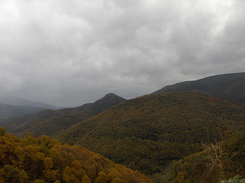 No pé da montaña había unha pequena touza de rebolos asfixiados pola carriza. Pam levara o zoom alí e distinguira as eirugas negras comendo as follas igual ca os vermes nerviosos no corpo dun can. De cor negra.