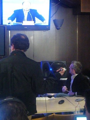 Os dirixentes populares continúan no interior da sede, analizando os datos recollidos ao longo da xornada; mentres, fóra, na sala de prensa, os xornalistas agardan. O éxito ou o fracaso popular pode depender dun escano.
