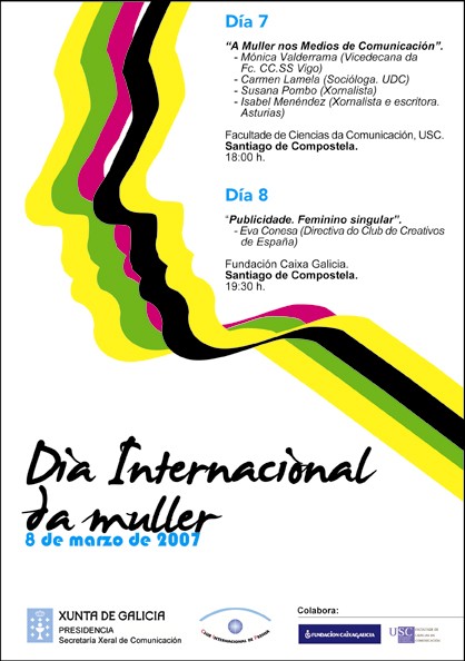 Con motivo da conmemoración do Día Internacional da Muller Traballadora, o Club Internacional de Prensa organiza dúas actividades: unha mesa-debate o día 7 ás 18.00 na Facultade de Xornalismo abordará o papel das mulleres nos medios de comunicación, e unha conferencia, o xoves 8 ás 20.30 na Fundación Caixa Galicia leva por título 'Publicidade. Feminino Singular'