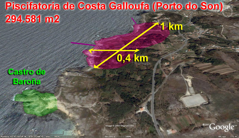 Deste xeito, desde Adega denúnciase que a instalación de Quilmas ocupa parte do Lugar de Interese Comunitario Carnota-Monte Pindo, “un espazo de alto valor ecolóxico parte de Rede Natura galega”. Lembran tamén que a piscifactoría de Costa Galloufa sitúase a menos de 400 metros do castro de Baroña.