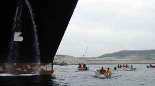 Os colectivos que apoian o Comité de Emerxencia da Ría de Ferrol animan a unirse á concentración convocada para as 19h deste venres no peirao ferrolán. As lanchas volverán saír a frear o paso do gaseiro.