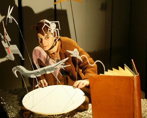 Vai onde te leven os pés, é o consello destas marionetas que xorden do propio corpo da actriz. A francesa