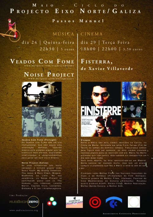 Máis audiovisual galego: as mellores curtametraxes galegas do 2006 proxectaranse nos FNAC de diferentes cidades portuguesas. Audiência Zero, a través do seu Projecto Eixo Norte/Galiza, trae a Portugal unha selección realizada pola Axencia Audiovisual Galega das mellores curtas galegas do 2006. Ficción, animación e creación experimental serán proxectados nas Fnac de Gaia, Porto e Coimbra o 11 e 12 de xuño, e en Matosinhos do 12 ao 13. Son nove filmes, cunha duración total de 114'.