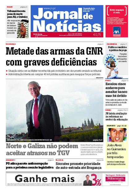 O Jornal de Notícias publica este luns unha entrevista co presidente do Goberno, Emilio Pérez Touriño. "A economia da Galiza cresce a um ritmo invejável. Emilio Pérez Touriño, o socialista que preside à Junta da Galiza desde 29 de Julho de 2005, explica, em entrevista ao JN, as razões da pujança". Deste xeito o diario presenta aos seus lectores a Pérez Touriño.