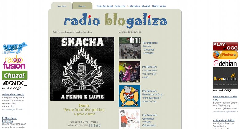 Xa está na rede Radio Blogaliza, unha nova emisora en liña que ofrece exclusivamente música galega que foi publicada na web de xeito gratuíto polos seus autores. Os internautas teñen a posibilidade de pedir os temas que desexen dun amplo catálogo. A vella fórmula das peticións do ouvinte está a ter un grande éxito nos primeiros días de vida da emisora.