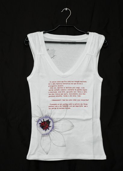 Acrílicos, agulla, fíos, botóns, serigrafías, pero sobre todo, moita creatividade para expresaren sobre a tea o seu xeito de ver a vida. As gañadoras da segunda edición de 100% Algodón tíñano claro: a sinxela camiseta da luguesa Marta Salgado Iglesias, realizada con acrílico e costura e co título O botón da risa, convídanos a premer un botón máxico para facela rir, e valeulle o segundo premio, de 300 €.