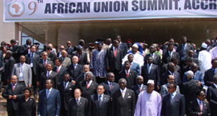 A Asemblea da Unión Africana estuda en Ghana o que o presidente de Libia definiu coma o posíbel "Estados Unidos de África".
