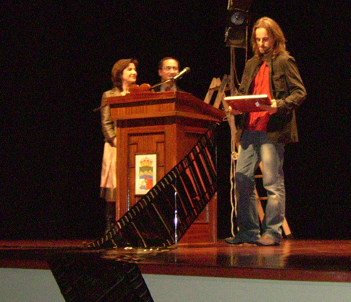 Ozo recollendo o primeiro premio do Liceo de Vilagarcía, que gañou a súa primeira curta, 'Baseado en feitos que puideron ter acontecido'