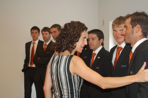 Todo o equipo profesional galego asistiu á recepción ofrecida pola Consellaría de Cultura e Deporte, na que foron felicitados polo seu éxito na Vuelta, ao tempo que lle facían entrega a Bugallo dun dos maillós da montaña que conseguiu na rolda española Serafín Martínez.