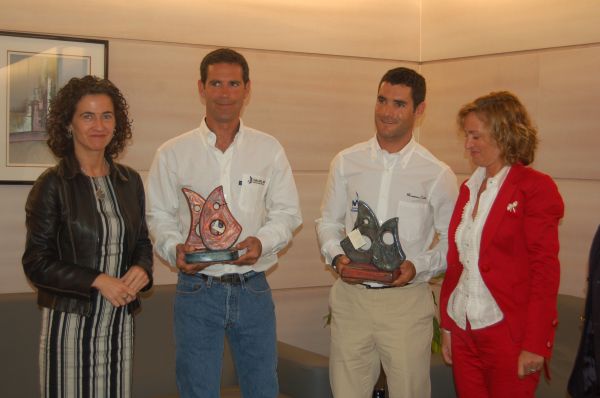 Fernando Echávarri e Antón Paz, recibiron os parabéns da conselleria Ánxela Bugallo, nun acto ao que tamén asistiron a directora xeral para o Deporte, Marta Souto; e o presidente da Federación Galega de Vela, José Ángel Rodríguez.