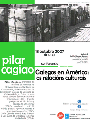 Pilar Cagiao, profesora de Historia de América na Universidade de Santiago de Compostela, dirixiu o Arquivo da Emigración Galega do Consello da Cultura Galega. Entre os seus libros cómpre salientar Muller e emigración (1997), O exilio galego de 1936: Política, sociedade, itinerarios (2007), coordinado con X. M. Núñez Seixas, Aproximaciones al americanismo entre 1892 y 2004 (2005), con E. Rey Tristán, e Cen anos da Biblioteca América 1904-2004 (2004).