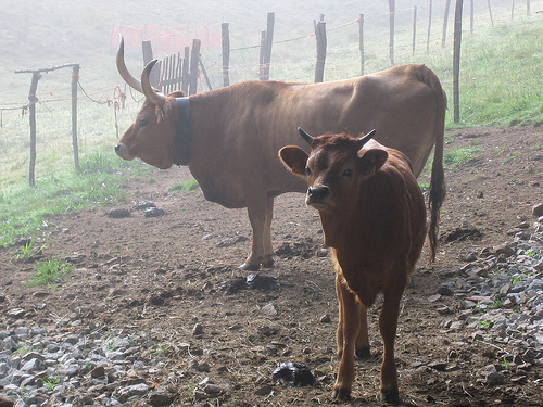 Unha vaca e unha puchiña da raza cachena, propia do Xurés. Flickr: fontearcada