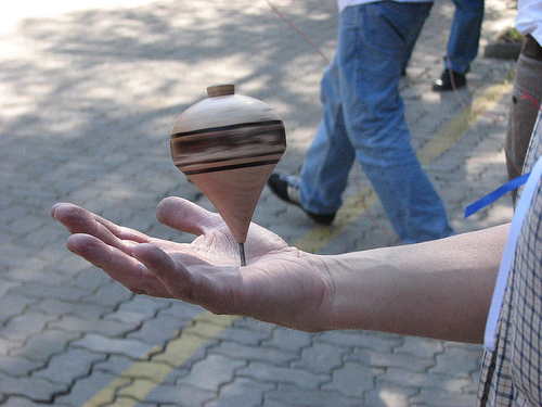 Sábese que é un xogo moi antigo e ao parecer xa se practicaba na época dos exipcios. Co paso do tempo apareceron numerosas variantes do xogo, pero a máis estendida é a que consiste en bailalo, despois de o ter amarrado cunha pequena corda, piola ou baraza ao seu redor.