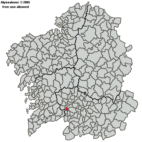 O mapa do concello, co río Arnoia divindíndoo en dous