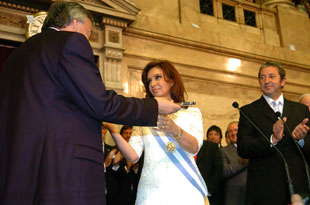 A muller de Néstor Kirchner recebiu o bastón de mando das máns do seu home, feito inédito na historia do país autral. No seu primeiro discurso que foi moi eloxiado, asegurou que a súa prioridade é o ensino e o pacto social. Crónica de Débora Campos.