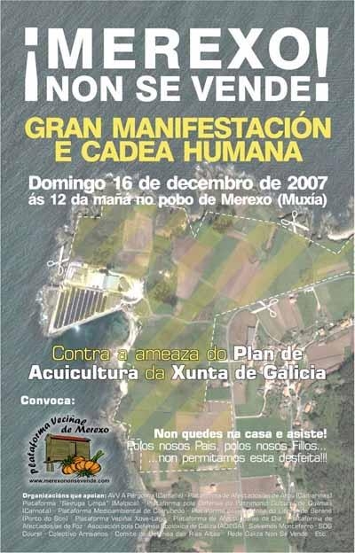 Este domingo, dende as 12.00 horas, os veciños da localidade realizan estes e outros actos para "pedirlle á Xunta por enésima vez que recapacite e evite o dano irreversíbel que suporía expropiar 270.000 metros cadrados (equivalentes a 40 campos de fútbol) de terreos de primeira calidade para darllos en concesión á empresa norueguesa Stolt Sea Farm".