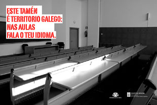 Por este motivo, a Universidade da Coruña deseñou unha campaña co obxectivo de "rachar esa fronteira lingüística" que aparecería ao cruzar a porta das aulas universitarias. A campaña foi presentada xa a semana pasada polo reitor da UDC, Xosé María Barja, acompañado polo secretario xeral, Xosé Manuel Carril, e mais polo director do Servizo de Normalización Lingüística, Xosé Ramón Freixeiro Mato. Adhesivos e cartaces coma o que acompañado dun aramado de espiñas contén o lema "Traspasa esta fronteira. Nas aulas tamén en galego", aparecen nas paredes dos centros da UDC desde esta semana.