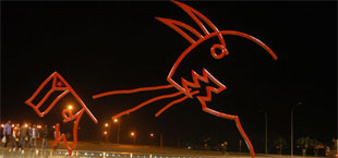Unha escultura do arquitecto brasileiro Oscar Niemeyer que simboliza a loita dos cubanos contra o imperialismo estadounidense preside dende este martes unha das prazas da Universidade de Ciencias Informáticas de La Habana, onde está previsto se instale un novo teatro.