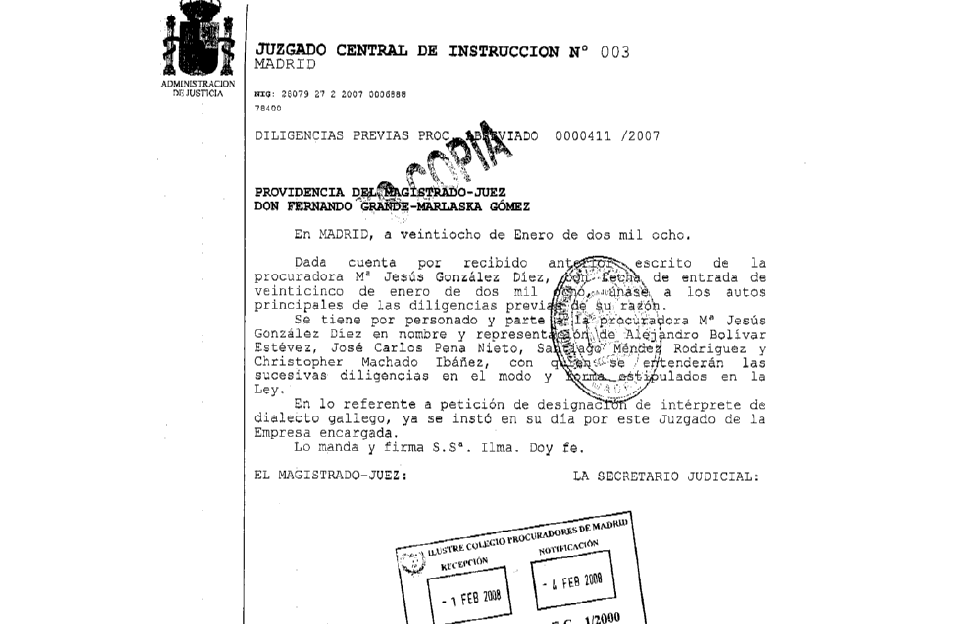 No documento, e en resposta á petición que a defensa dos catro rapaces fixo dun intérprete, o xuíz escribe: "(...) en lo referente a [la] petición de designación de intérprete de dialecto gallego, ya se instó en su día por este juzgado de la Empresa encargada".