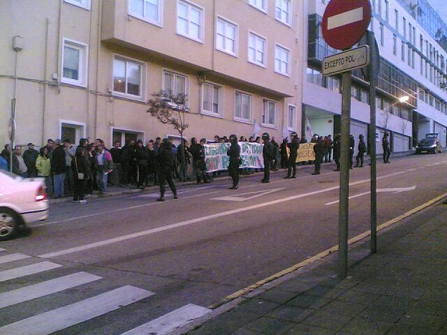 "A lectura que nós facemos é que estes días toca campaña electoral, e despois do PP, vai o PSOE ao rabo deles con estes actos", salientou Joám Peres, lembrando que o protocolo habitual que a policía española segue nestes casos (nos casos de forcexo ou cando "dan leña") é denunciar penalmente a calquera dos manifestantes sobre os que se emprega, como desta volta, "a mínima forza imprescindíbel" antes de que estes, polo seu lado, denuncien ás forzas de seguridade.