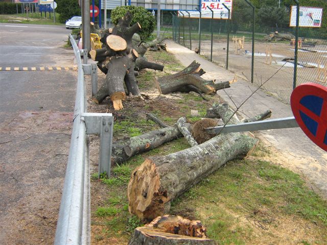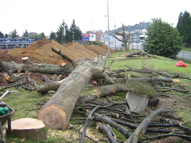 Traballadores da empresa Dragados, concesionaria das obras de ampliación do aparcadoiro de Peinador, procederon a talar este martes á mañá varias árbores centenarias situadas nas inmediacións da terminal de Vigo.