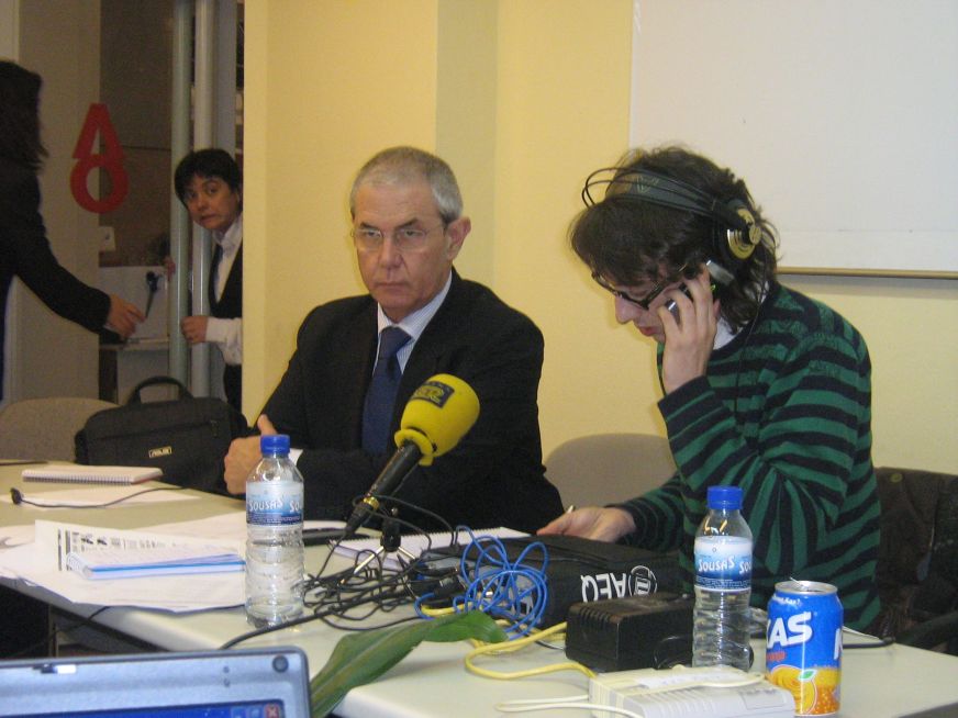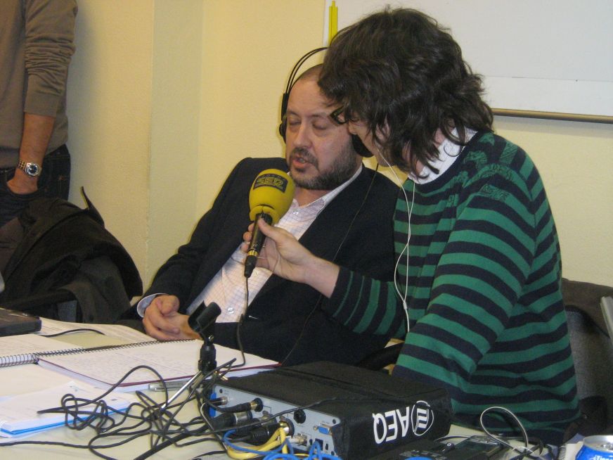 Touriño falando para a radio, á volta das 00h05 do 10 de marzo