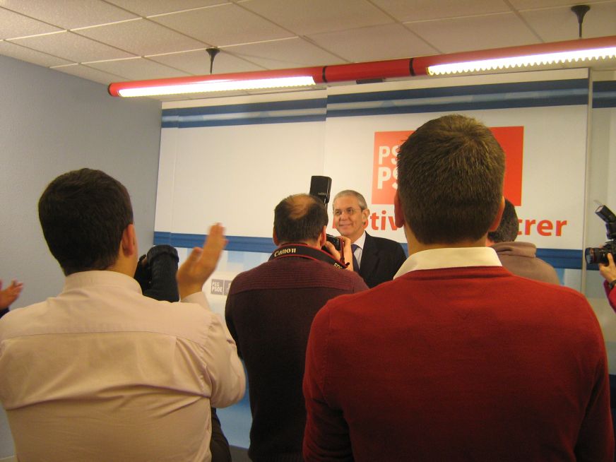 Ambiente contido, aínda que se escoita algún berro de fondo. Membros do PSOE únense aos xornalistas nos petiscos.