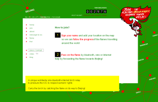 Para chamar a atención sobre isto, a campaña creou a web Catch the Flame. Así, a partir do camiño do facho olímpico cara a Beixín, promóvese unha "carreira de relevos electrónica" coa que se quere facer presión sobre o movemento olímpico. "Uníndose a esta marcha, a opinión pública do mundo enteiro pode enviar unha mensaxe clara esixindo que os Xogos Olímpicos sexan realmente limpos e que as condicións de traballo para os que fabrican os produtos olímpicos tamén sexan decentes e xustas", di Esther de Haan, voceira da Campaña Roupa Limpa.