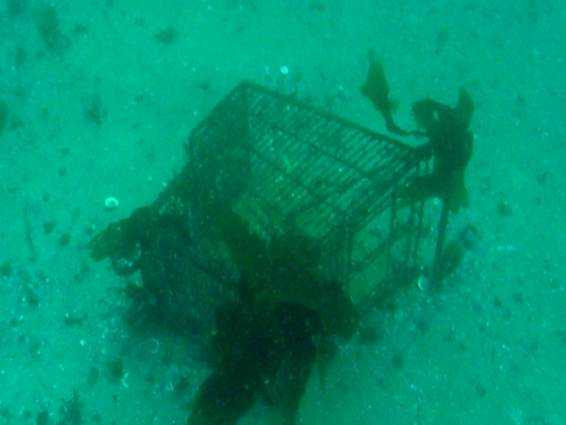 Neumáticos, caixas de bebida e envases diversos, aparellos de pesca variados, madeiros, até un carro da compra...
