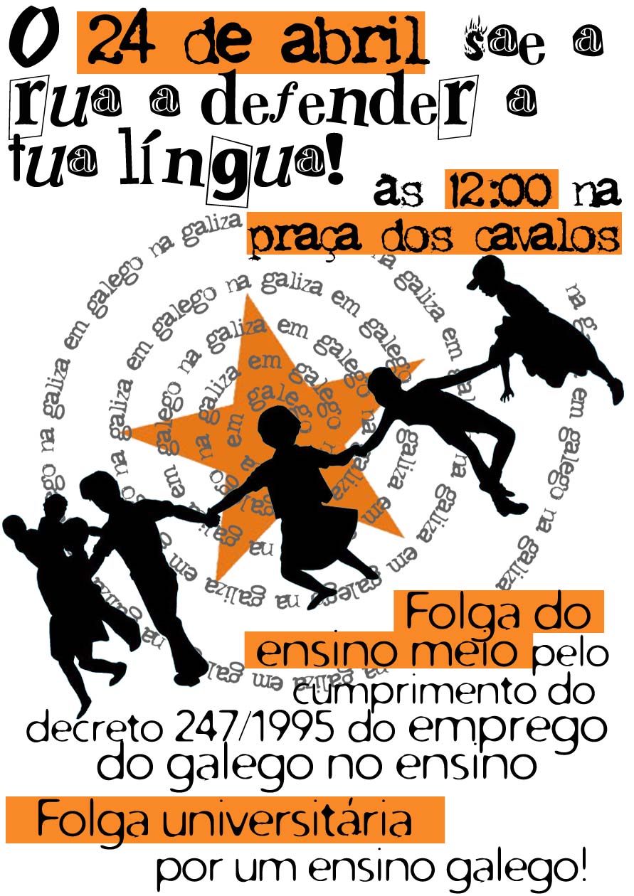 Baixo o lema "O 24 de abril sae á rúa a defender a túa lingua" o Foro da Mocidade de Vigo organizou unha manifestación na cidade, dirixida aos estudantes de ensino medio e universitario para protestar contra os impedimentos que está a atopar o Decreto 124/2007 do emprego do galego no ensino para ser aplicado e por un ensino universitario completo en galego.