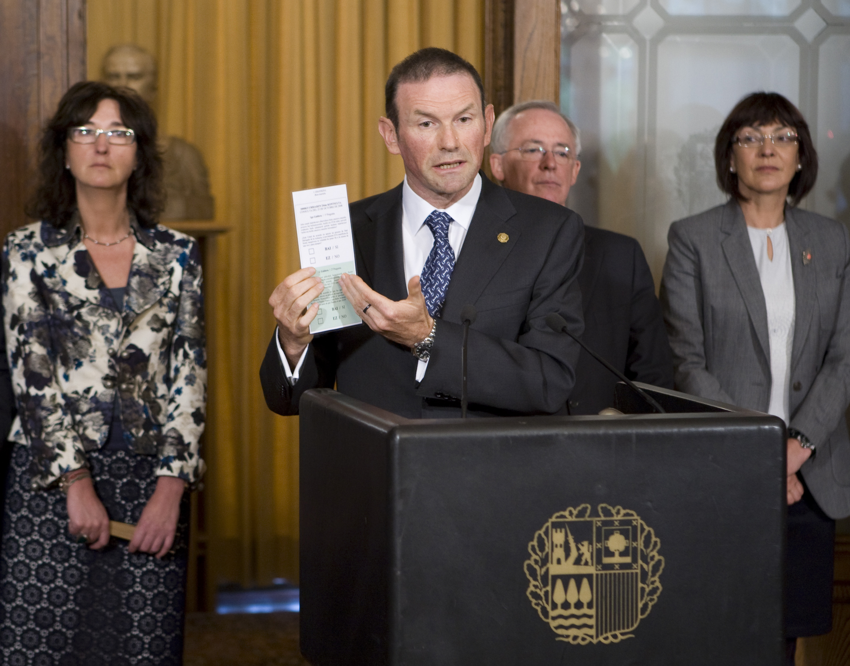Nekane Erauskin e Itziar Bazterrika, parlamentarias de EHAK, compareceron na mañá do xoves diante da prensa para anunciar que facilitarán o seu apoio ao proxecto de consulta promovido polo lehendakari Ibarretxe. A fórmula escollida será que unha soa das deputadas da formación abertzale vote a favor da proposta, rachando así o empate a 33 do tripartito e Aralar fronte aos votos de PSE e PP, mentres o resto de representantes de EHAK se absterán.