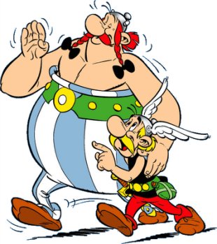 Nos anos setenta, sen lei de normalización e sen a existencia dunha política lingüística dende as institucións os líbros de Goscinny e Uderzo si se traducían, publicaban e vendían en galego, traducidos dous destes álbumes polo propio Eduardo Blanco Amor. As aventuras de Asterix e Obélix comezaron a publicarse en 1959, casualmente o mesmo ano que viu a luz A Esmorga. Xa en 1963, na Feira do Libro de Frankfort, Fernando Arenas (propietario da libraría Arenas da Coruña) fíxose cos dereitos de publicación dos heroes galos na nosa lingua.