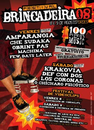 Un festival completiño esta fin de semana en Ordes. Á parte dos concertos, nos que poderás ver a Amparanoia, Che Sudaka, Obrint Pas, Krakovia, Def con Dos ou O Chícharo Psicótico, entre moitos outros, tamén haberá festival de videocplis, exhibición de Arte na Rúa, concurso de Guitar Hero, zona de acampada e aparcadoiro, todo de balde. Consulta o cartaz para ver todos os grupos e a web para saber máis das actividades.