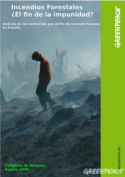 A organización ecoloxista internacional, Greenpeace, presentou un informe ao que titularon Incendios Forestais, a fin da impunidade?, no que analizan se un dos maiores problemas ambientais aos que se enfronta o Estado Español ten unha acertada resposta xudicial, isto é, se os incendiarios acaban pasando polo xulgado. Neste sentido, o texto conclúe que, pese aos avances, os incendios forestais son, neste Estado, aínda hoxe un delito impune, posto que só un de cada 1.000 responsábeis de incendios forestais acaba sendo xulgado.
