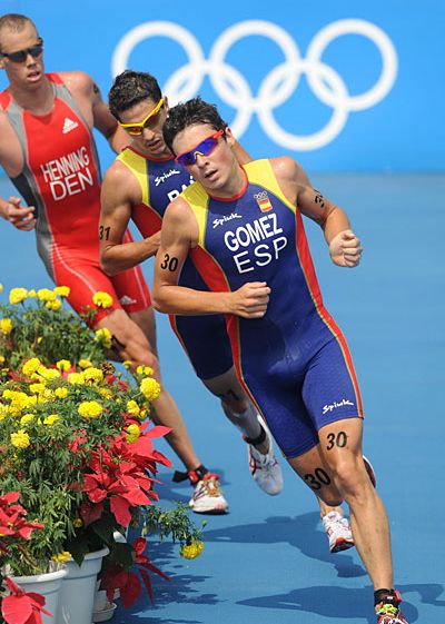 Gómez Noya correndo en Beixín, onde foi cuarto. Detrás del, Iván Raña