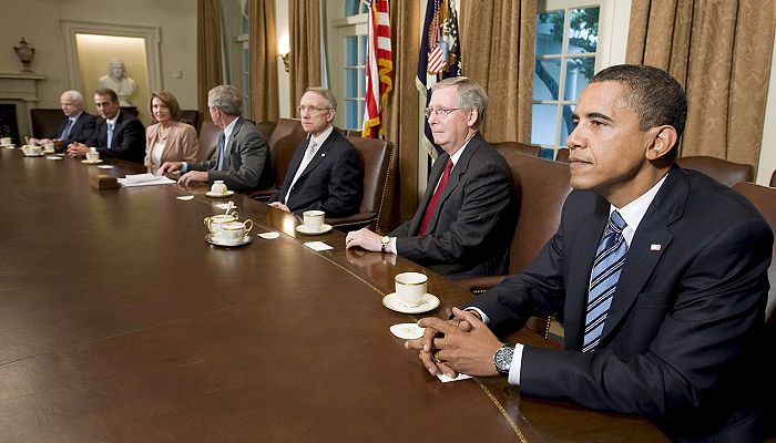 George Bush recibiu aos líderes do Congreso, a Barack Obama e a John McCain. Con todo, o encontro non deu ningún froito tanxible. Os lexisladores republicanos e demócratas continuarán este venres coas negociacións.