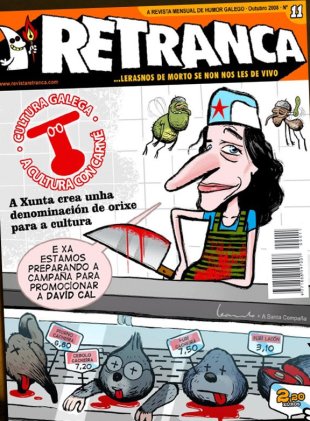 Recentemente comezou a colaborar o Carrabouxo, e tamén incluímos unha sección na que damos entrada a escritores galegos, porque temos aquí a autores con moita retranca. E nos próximos números entrarán Rober Bodegas e Pepe Carreiro. En canto á revista, queremos incorporar máis páxinas en cor. Tamén imos facer fincapé na Colección Retranqueira, en libros de humor galego que non se van vender no quiosco, senón en librarías. Así conséguese que permanezan máis tempo á vista, dispoñíbeis; os quioscos son moi efémeros. A comezos de ano sairán un de Alberto Guitián e outro de Mel.