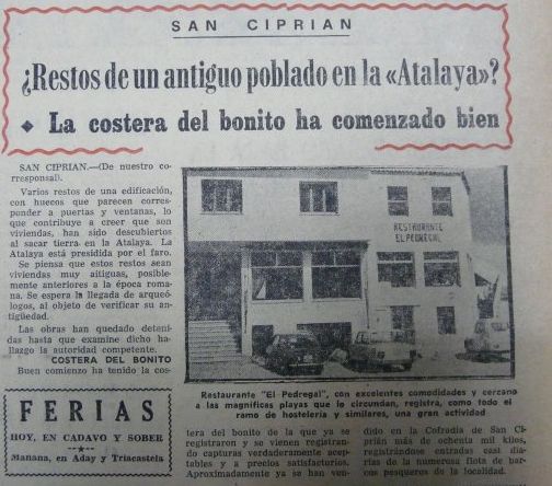 En xullo de 1974 no transcurso dunhas obras na zona Atalaia, na vila de San Cibrao (A Mariña), nunha horta da chamada "a casa de Dorita", descubriuse un edificio soterrado na area. Debido á importancia do achado, naquela altura a denominada Dirección Xeral de Belas Artes, paralizou as obras e realizou unhas escavacións arqueolóxicas, crese que baixo a dirección de Manuel Chamoso Lamas. Aquelas escavacións foron visitadas polo Presidente da Deputación Provincial de Lugo o día 20 de xullo, e o xornal El Progreso recollía a noticia.