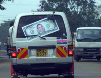 : Camioneto circulando por unha estrada de Kenya con imaxe de Obama. Foto tirada da Fox News
