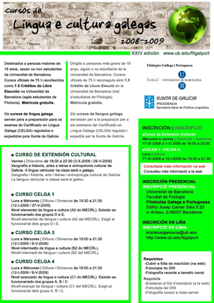 Estes cursos, cuxa inscrición está aberta até o 12 e xaneiro de 2008, serven para a preparación para os exames do Certificado en Lingua Galega (CELGA), regulados e expedidos pola Xunta de Galicia.
