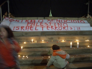 Despois das concentracións desta semana en varias cidades do país para pedir a paz e a fin das agresións aos territorios ocupados por Israel, a agrupación Galiza por Palestina, en colaboración con moitos outros colectivos sociais do país, convoca seis accións máis previstas para este venres e sábado. De novo, servirán para amosar a repulsa colectiva pola "agresión militar sionista na Faixa de Gaza" e solidarizarse co pobo palestino.