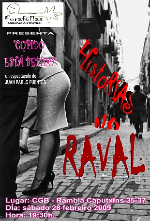 Furafollas Agrupación Teatral segue esta tempada co "Ciclo Historias no Raval", abrindo o Centro Galego a novos artistas sen relación directa co centro, até o de agora. Se o mes pasado presentaban a Alberte Montes cos músicos cataláns de "Not Just Jazz" (Víctor, Bàrbara, Guillem), este mes presentan o espectáculo "Cupido está bebido" do narrador oral Juan Pablo Fuentes.