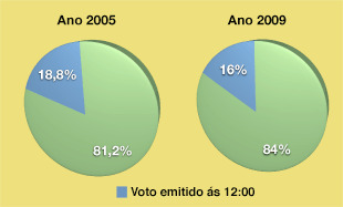 Por volta do mediodía, o 15,81% do electorado galego xa tiña acudido ás urnas, unha cifra máis pequena que a rexistrada en 2005 cando, a esta hora xa tiña votado o 18,8% das persoas con dereito a facelo.