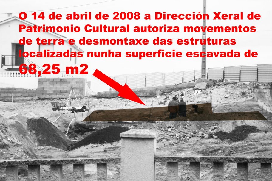 O 14 de abril dese ano, a Dirección Xeral de Patrimonio Cultural autorizou movementos de terra e desmontaxe dunhas estruturas localizadas nunha superficie escavada de 68,25 metros. En consecuencia, quedaron, en total, 191,75 metros cadrados de área arqueolóxica que a construtora non podería alterar. Porén, esta semana a asociación constatou que só quedan 15 metros cadrados do xacemento arqueolóxico inventariado. Neste tempo, segundo denuncian dende Mariña Patrimonio, a construtora Promociones San Ciprián esbandallou case 180 metros cadrados de castro, novamente.