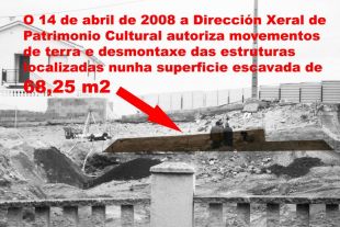 Agora, tras saber da nova destrución, a asociación Mariña Patrimonio, exixe a "inmediata paralización das obras", e que, "a maiores das sancións administrativas que poidan corresponder", se poña en coñecemento do Ministerio Fiscal a "reiterada destrución do patrimonio arqueolóxico histórico, co "agravante de ter provocado a completa destrución dunha parcela de xacemento arqueolóxico inventariado".