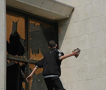 Os manifestantes irromperan esta terza feira na Cámara para saqueala, deitando mobles e computadores polas fiestras, para despois poñerlles lume. Poucas horas despois chegaran tamén á oficina do presidente, Vladimir Voronin, quen denunciou, nunha mensaxe televisada, que era a oposición quen estaba detrás de todos os disturbios, tentando perpetrar un "de golpe de Estado", e asegurou que había protexer Moldova "dunha presada de fascistas embriagados pola ira". Na toma do Parlamento por parte da policía poderían ter sido detidas unha ducia de persoas.