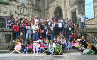 Un colectivo de arredor de 80 persoas, entre nais, pais, fillas e fillos, concentráronse este sábado perante o Museo do Pobo Galego, en Compostela, para pedirlle ao Goberno que manteña ou mellore a cobertura legal do galego no ensino.