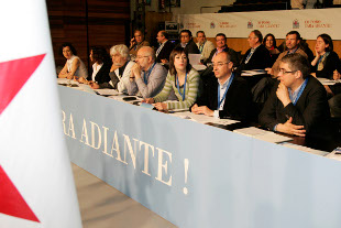 Ben entrada a tarde, a temperatura sobe no Pazo de Congresos de Compostela. A pesar das negociacións de última hora, a candidatura encabezada por Carlos Aymerich mantivo firme o anuncio de acudir á votación á Executiva. Fronte a esta estará a liderada por Guillerme Vázquez, que integrou finalmente a Máis Alá facéndolle un sitio a Rafa Villar.