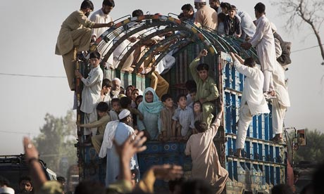 Tras o levantamento do toque de queda, decenas de milleiros de residentes na contorna do Val do Swat, ocupado polos talibáns, recolleron as súas pertenencias e botaron a andar, fuxindo con rapidez, ante a posibilidade de que este anuncio significase unha intensificación dos combates. "A miña información é que máis de 100 mil persoas conseguiron abandonar Swat durante o día de hoxe", declarou o domingo o ministro de Montes de Paquistán, Wajid Ali, que é tamén deputado por Mingora, a principal cidade deste distrito. Con estas 100 mil persoas, xa son 300 mil as desprazadas dende que o exército paquistaní lanzou a ofensiva militar para frear o avance dos talibáns hai dúas semanas.